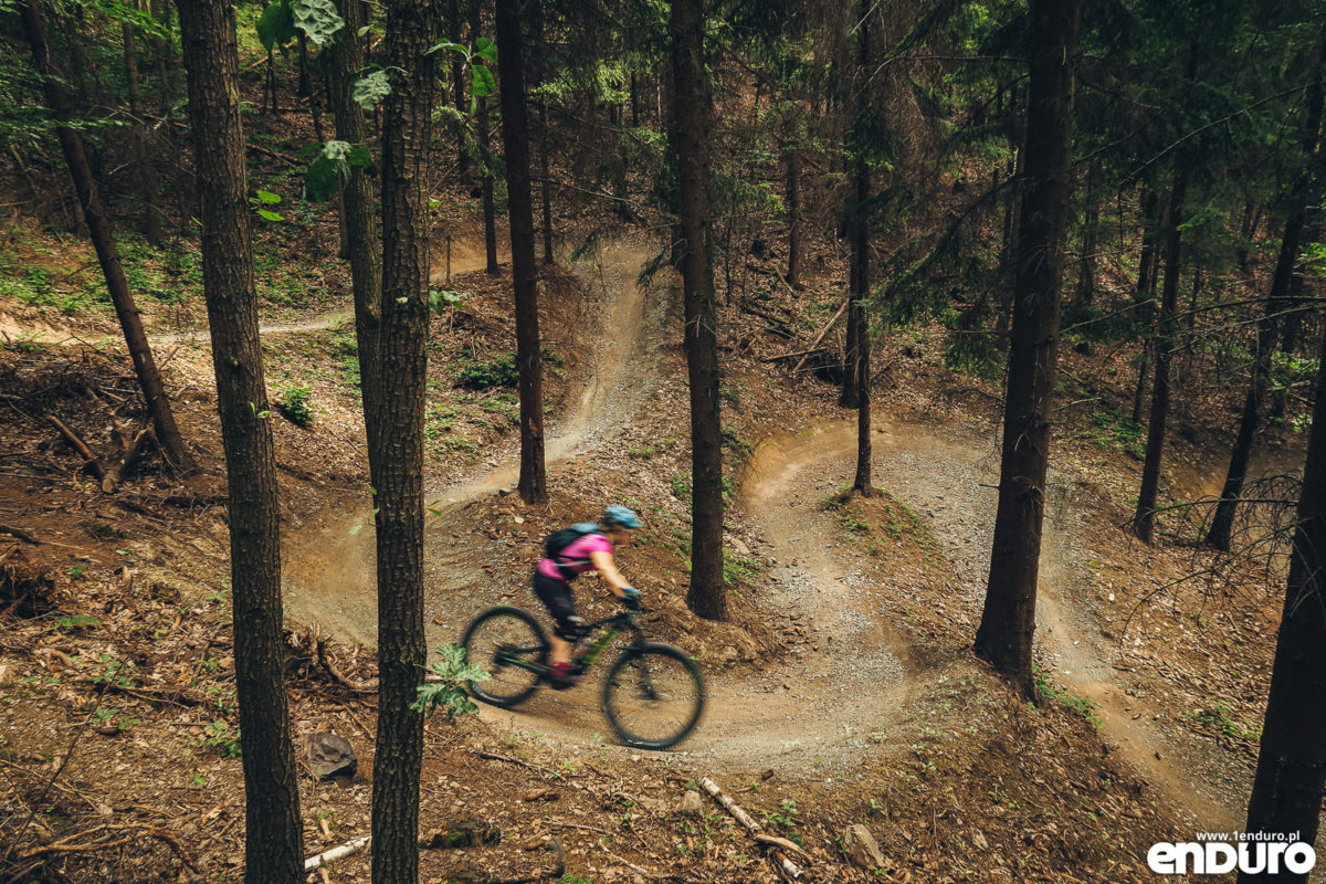 Początek zjazdu na terenie Bike Parku Warszewo - koniec na Polanie Harcerskiej.